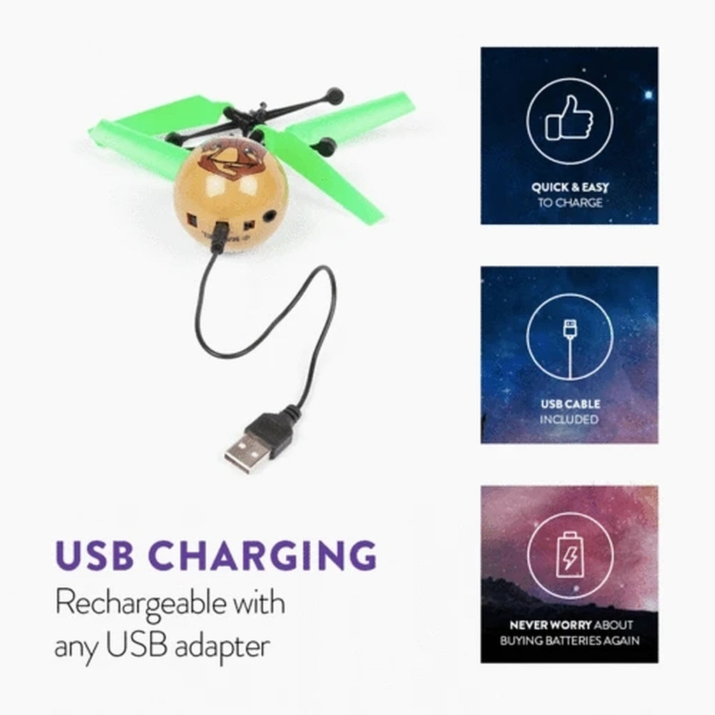 Présentation de la boule d'hélicoptère UFO Baby Groot IR sous licence Marvel Guardians of the Galaxy ! Doté d'un système de rotor coaxial pour un mouvement précis et une stabilité accrue en vol stationnaire. Le corps de l'UFO Heli Ball est également construit avec un matériau durable, ce qui le rend solide mais léger, vous n'avez donc pas à vous soucier de casser quoi que ce soit lorsqu'il atterrit un peu trop brutalement. Il suffit d'allumer et de lancer pour commencer, en tenant votre main en dessous, il restera en l'air. Une fois le vol terminé, vous pouvez essayer de le saisir, mais vous pouvez également utiliser n'importe quelle télécommande IR pour l'éteindre et le récupérer en toute sécurité, c'est aussi simple que cela ! Incontournable pour les fans d'hélicoptères, procurez-vous dès aujourd'hui la balle Marvel Guardians of the Galaxy Baby Groot IR UFO Heli Ball !