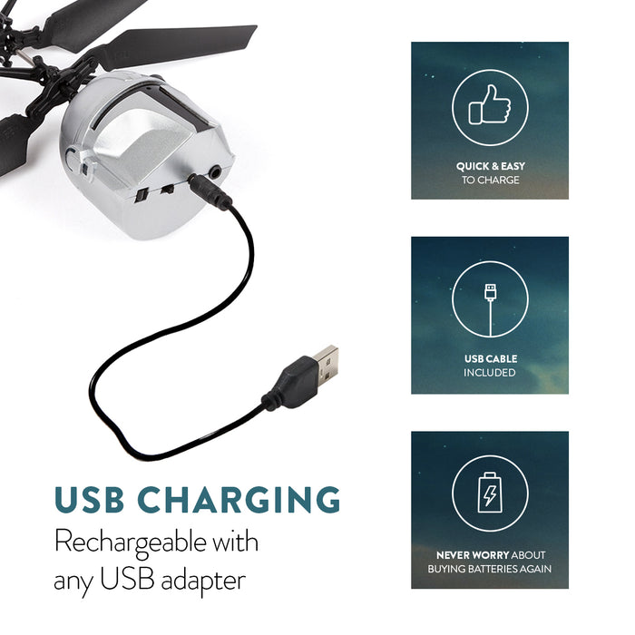 With autopilot, durable metal construction, and easy-to-use controls, it’s an easy way to bring fun and excitement into your home - without damaging your walls and furniture!The USB chargerlets you charge them in the car, at home, and on the go, so your kids are never bored.