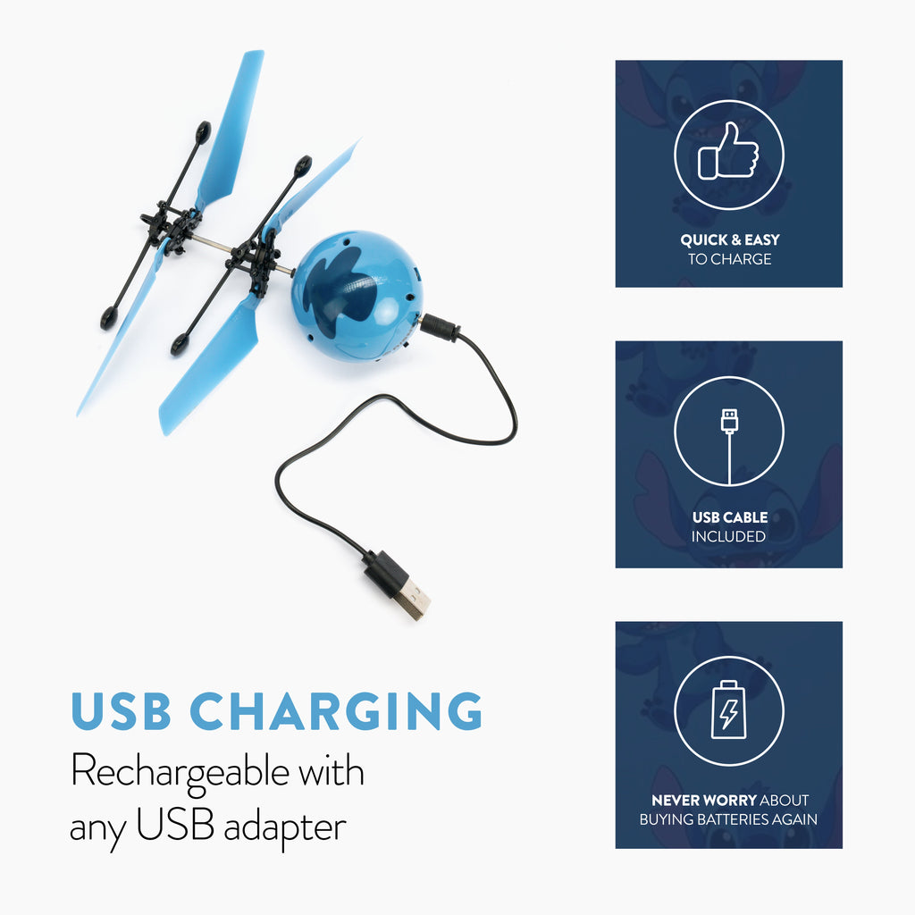Just switch it on, toss it into the air, and control it with your hand using advanced infrared sensor technology. Ready to land? Simply catch it or use any infrared remote to bring it down safely. Great for boosting hand-eye coordination, this heli ball is a must-have for Stitch fans and flying toy lovers alike.