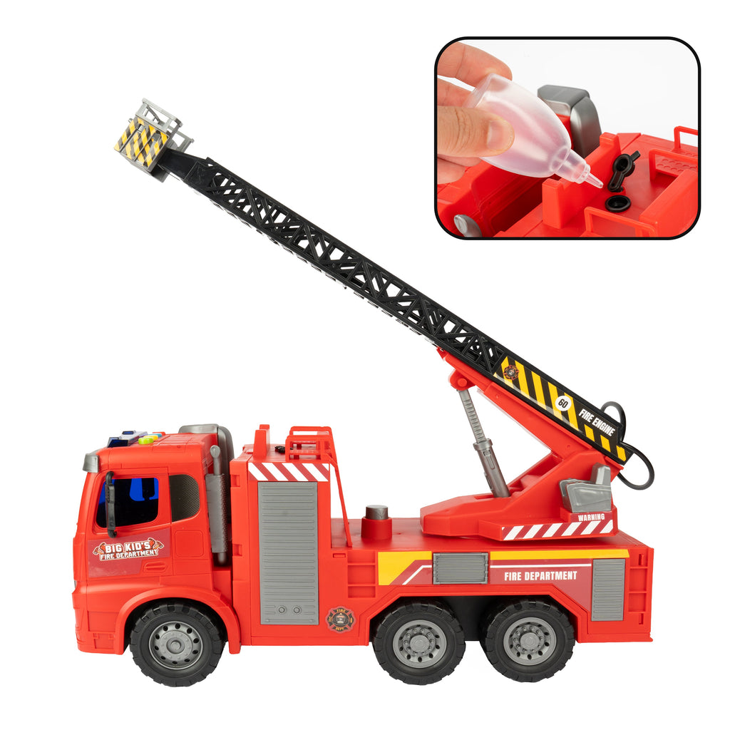 Bring the excitement of real firefighting home with the Big Kid’s Fire Department Friction Ladder Fire Truck! Built at a1:10 scale, this fire truck is packed with interactive features that make playtime fun, realistic, and educational.