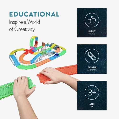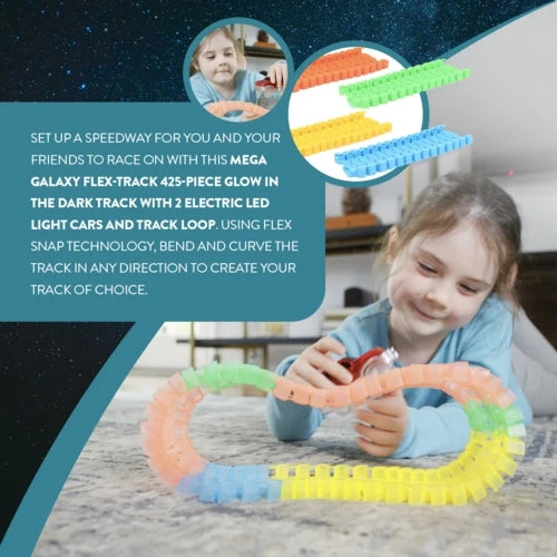 - World Tech Toys Mega Galaxy Flex-Track 425-Piece Glow in the Dark Track with 2 Electric LED Light Cars and Track Loop