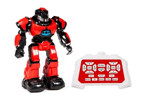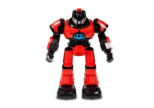 Get ready to have a blast with this World Tech Toys Mega Mech Full Function IR RC Robot. This awesome robot features flashing LED lights, sound effects, as well as a red and black color scheme on its futuristic body design. The Mega Mech comes with a multifunction IR transmitter control and a wrist remote control that lets you control this robots movement that includes dancing, playing music, moving left, right, forward and backward. You can also control this robot using hand gestures which makes for an incredible experience. The multifunction IR transmitter control requires 2 AA batteries (Not Included), the wrist remote control requires 3 LR44 button cell batteries (Included), all you need to do is charge the Mega Mech with the USB charging cable and you're good to go. Dance along with this awesome World Tech Toys Mega Mech Full Function IR RC Robot. Get yours today!