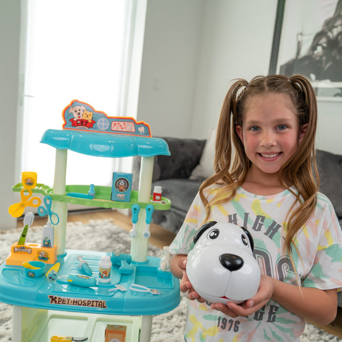 Your child will enjoy pretend play as a pet dentist with the Imagine Zone Pet Dentist Teeth Removal and Cleaning 43 Piece Playset. This playset comes complete with a pet dentistry station and all the tools needed to care of your pet's teeth. From teeth cleaning to X-Rays this set includes dental instruments such as dental mirrors, toothbrush, water syringe, probes, and much more. This set also features a light up X-Ray Tool and Dental Mirror. This playset will stimulate imagination, creativity, and motor skills. Enjoy being a pet dentist with the Imagine Zone Pet Dentist Teeth Removal and Cleaning 43 Piece Playset.